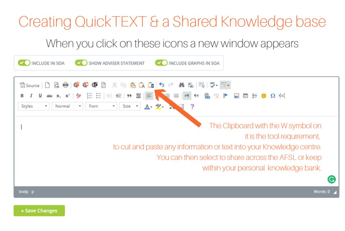 The system allows the use of an advanced Cut & Paste tool that allows text to be captured from any source and imported into your SOA statement.