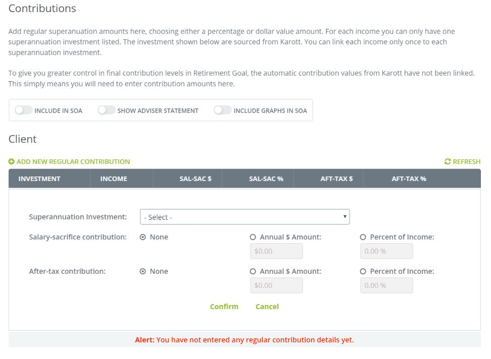 Within your Fact Finder you have the option to ask the client if they are currently or planning to add any additional contributions to their fund.