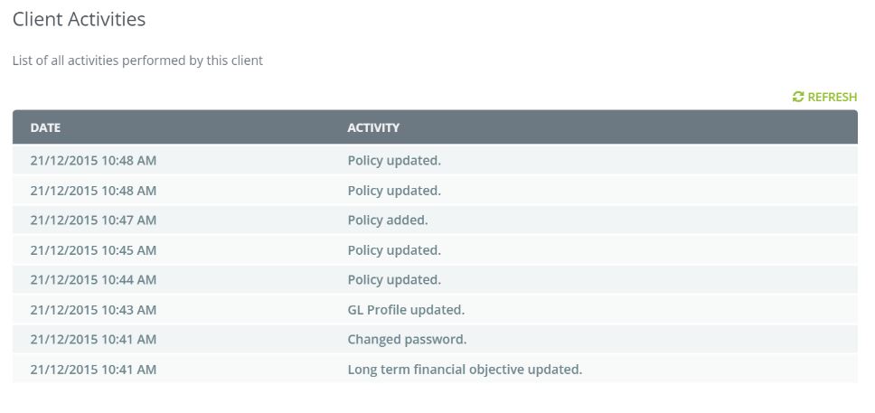 Your next indication that a client has viewed or altered their position is within the Client Activities Tab on your Dashboard - this will display what the Client actually did when they logged in.
