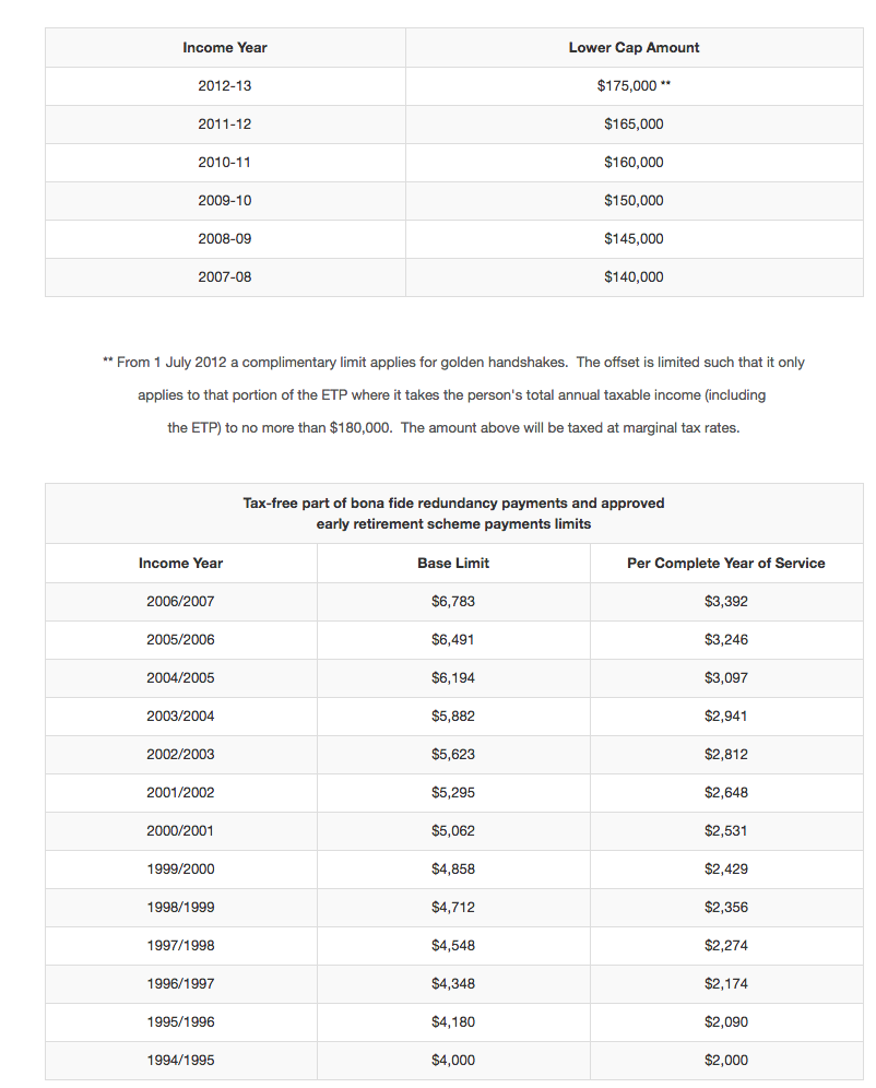 A Tax Offset ensures that ETPs up to the lower cap amount incur a 15% tax rate if above preservation age and 30% for those under preservation age. It is not possible to roll over these monies to a super fund.