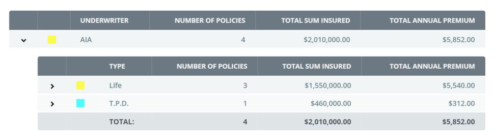 You now can continue to drill down based on TYPE of cover which instantly displays the Name, Policy Number, Sum Insured and Annual Premium.