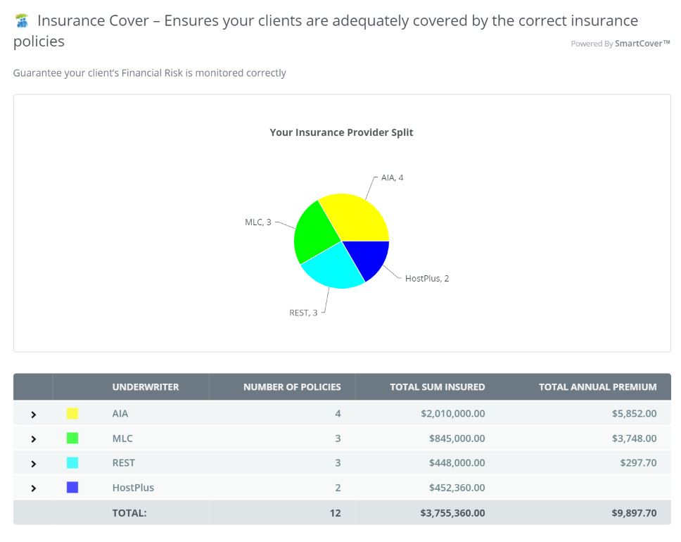 Here you can view a range of Insurance providers and drill down by percentage pf, to actual client usage.