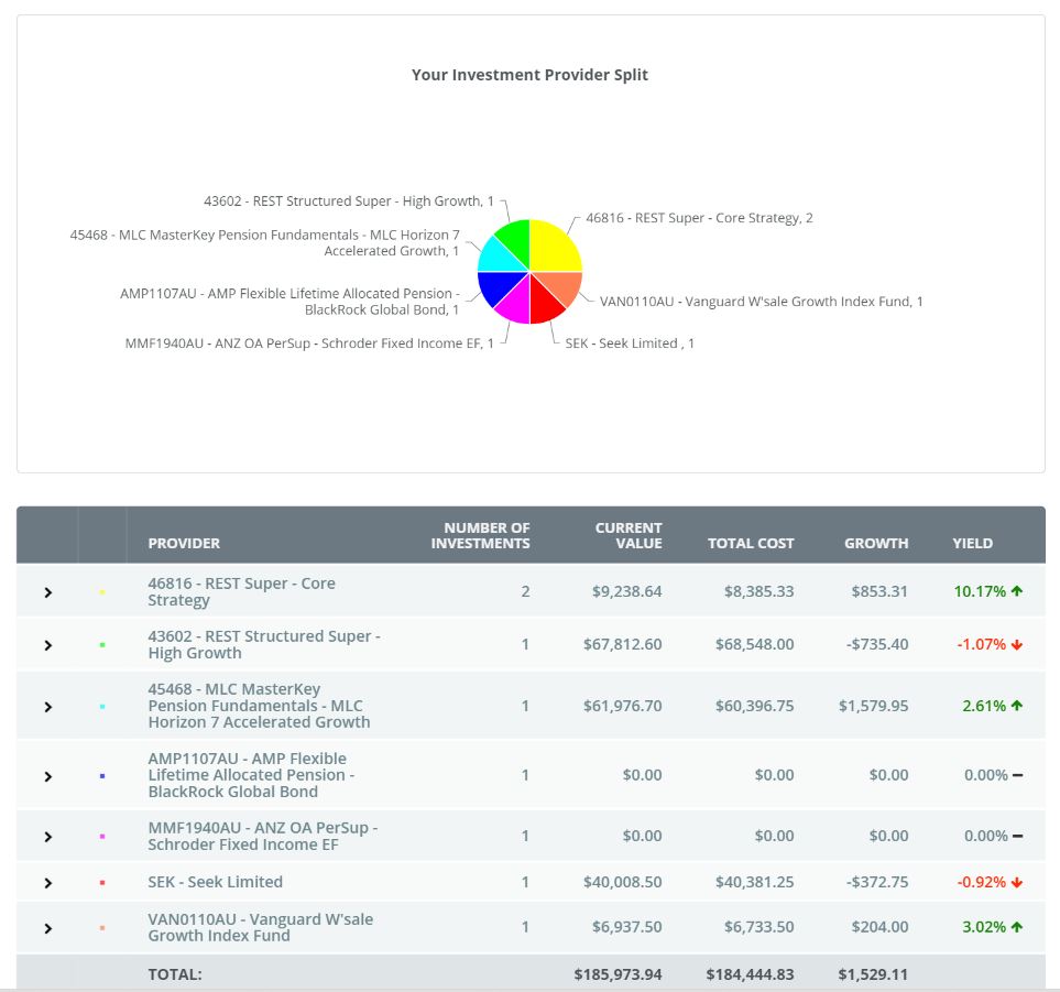 Here the same concepts apply however you also receive a snapshot of the active fund performance rates.