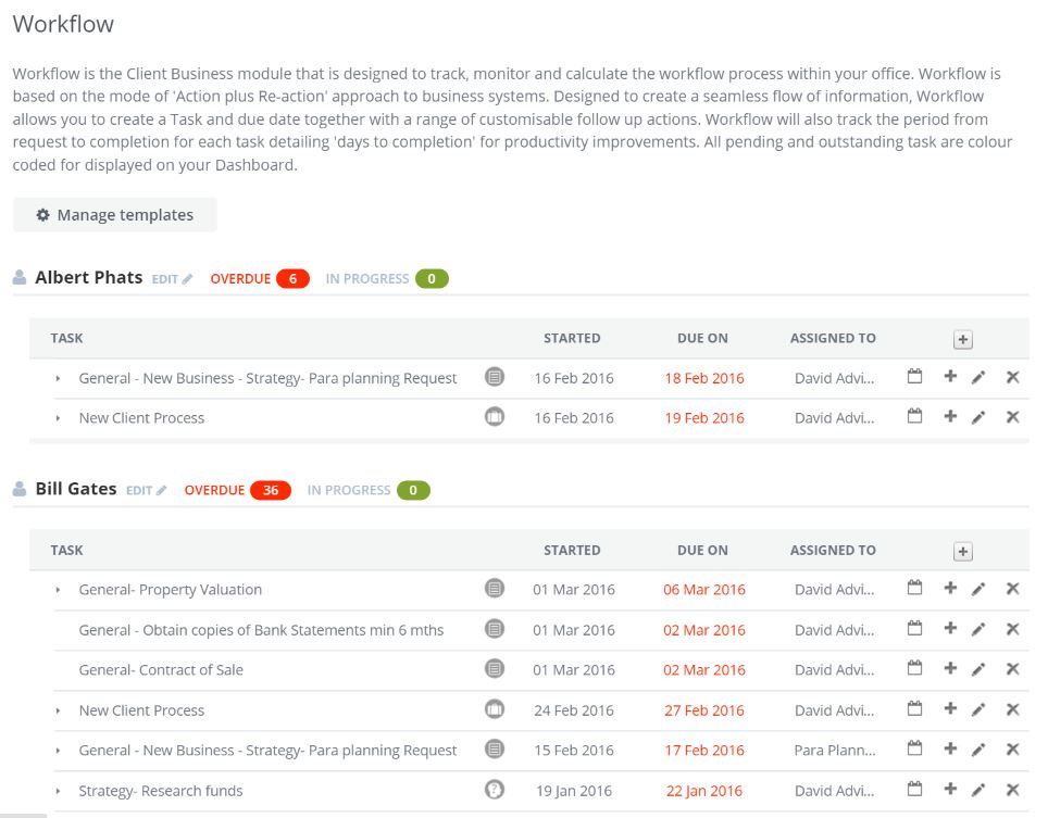 Workflow offers you a complete practice management view point and call to action baseline so you can manage projects and advice positions.
