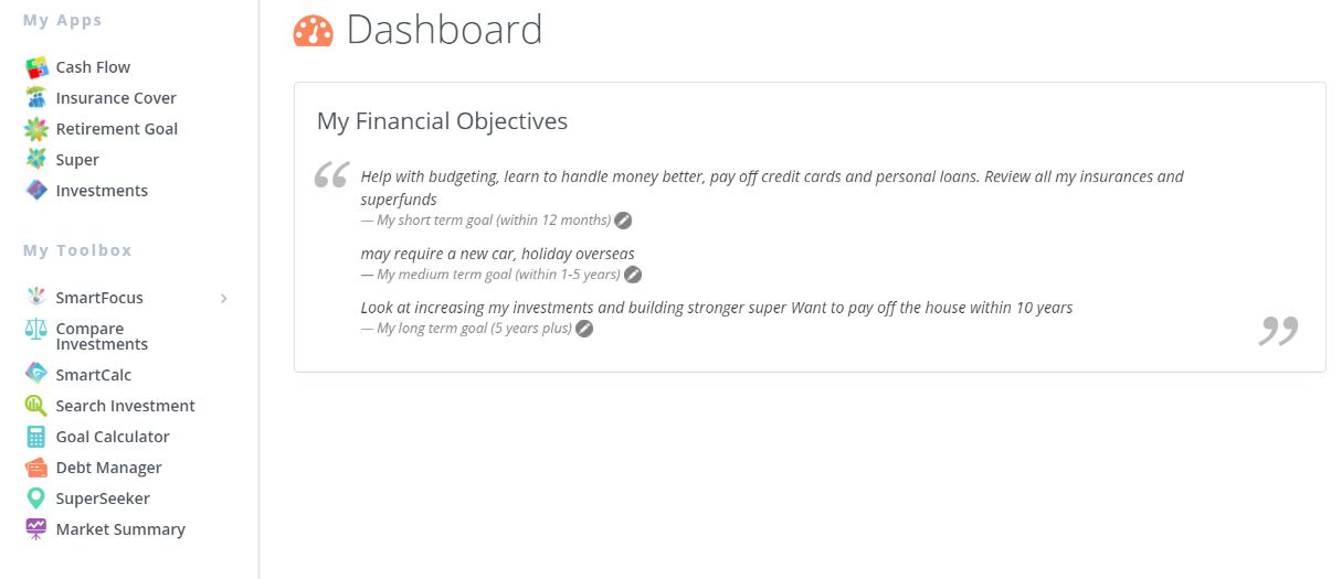 You will also see that you can offer the 'My Toolbox' range to your client, this is for use by the more engaged client and once again, all activities relating to the client file is reported to the Adviser.