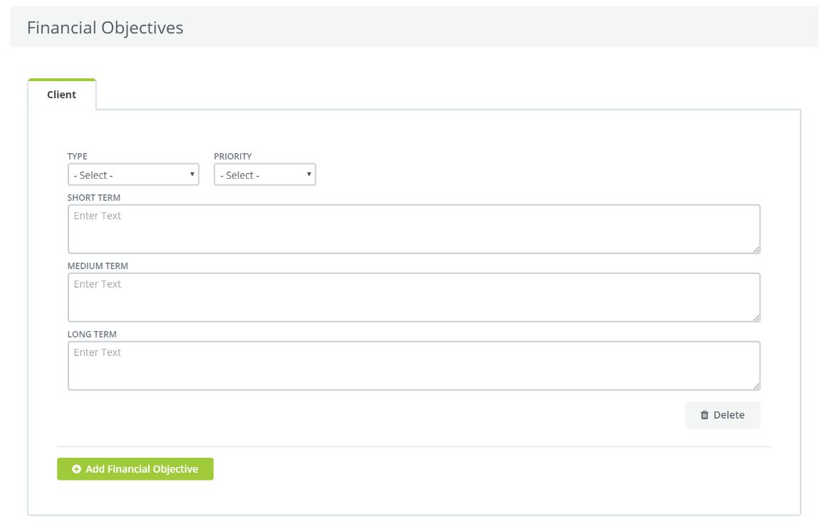 "TYPE" allows you to choose between the different types of objectives your client may have.